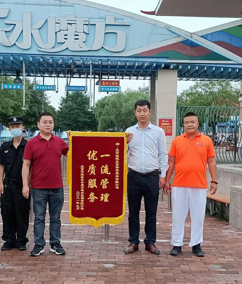9月5日下午,我司收到北京华旅欢乐水魔方嬉水乐园有限公司送来写有“一流管理,优质服务”的致谢锦旗,这是对我司安保工作致以最崇高的敬意。一面锦旗,看似简单,但它凝聚着人民群众对安保人员的莫大鼓励,安保人员纷纷表示,赠送的锦旗既是鼓舞,更是鞭策。